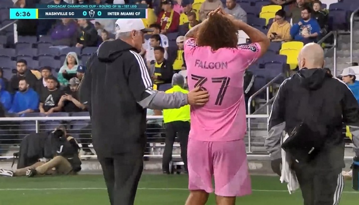 九游体育安全吗-迈阿密后卫法尔肯开场第7分钟伤退,与对手争球被压倒